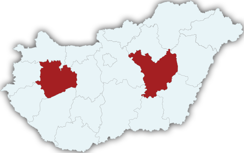 Borsod-Abaúj-ZemplénSzabolcs-Szatmár-BeregHajdú-BiharBékésCsongrád-CsanádBács-KiskunBaranyaSomogyZalaVasGyőr-Moson-SopronKomárom-EsztergomTolnaVeszprémFejérBudapestPestJász-Nagykun-SzolnokHevesNógrád